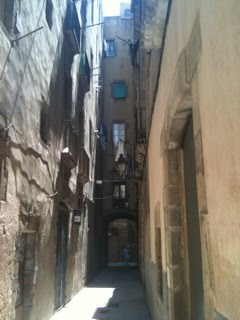 On the plaza where it seems all come to visit. It's about 8pm and the restaurants never open until 8:30pm(?). So we sit,have a glass of wine and watch the people.